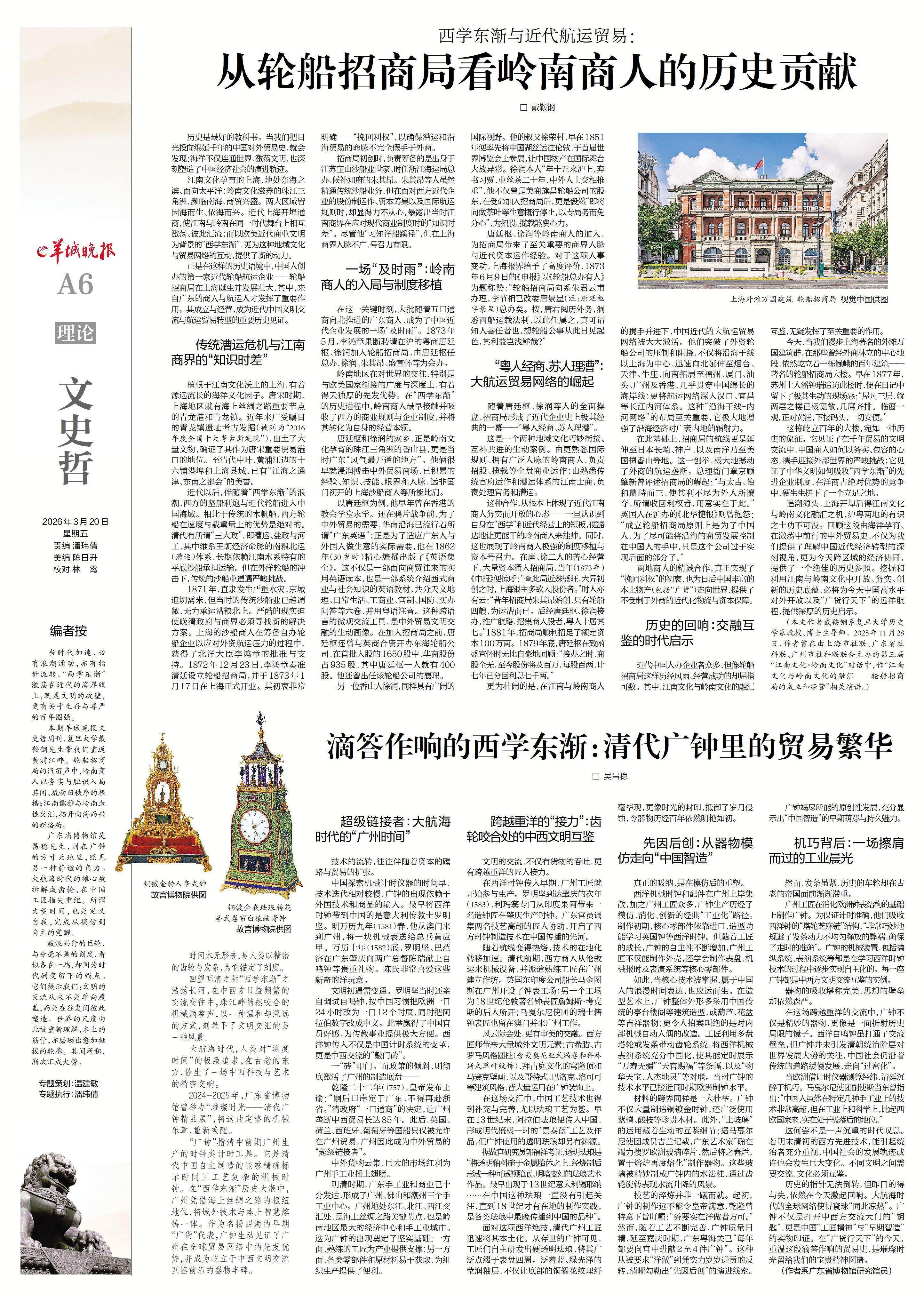 2026年3月20日《羊城晚报》文史哲A6版